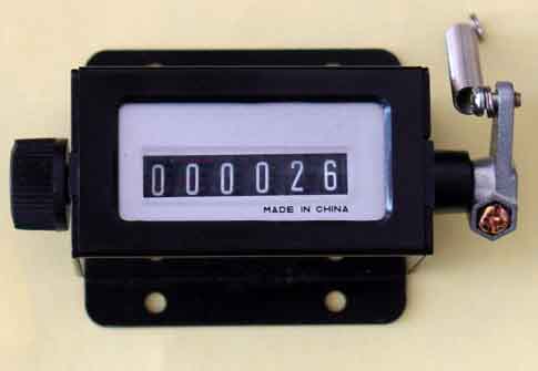 The model J114 serials counters are used to count accumulative times of the stroke movements of machinery or instruments. The pulling counting can be carried out so long as the pulling arm of the input axis of the counter is connected to instruments or machines. Direct reading of the digit indication with rotation reset. Accumulative counting can be started from zero again after reset. The model J114 serials counters are mainly applied in textile, machinery, instruments and mines etc.