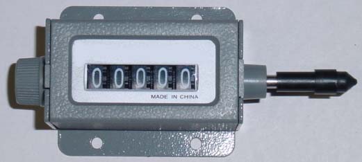 The model J116-001 counter is a kind of mechanical rotation counter. Driving the active axis, the internal gears mechanism drives the counting wheel to carry out the decimal adding counting, the counting value is added 1, when the active axis rotates one round anticlockwise. Pressing of the reset button can reset the number of the counting wheel simultaneously. The figure of the counting wheel can be used to measure the rotation speed of various machinery and to measure length, depth and flow amount etc., and it is widely applied in machinery, wire-making, tape-making and printing etc., it is therefore a necessary tool for measuring and recording.