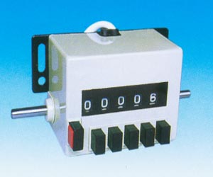 The model J250 counter is mainly divided into two categories of rotation and pulling, it is suitable for controlling the rotation or stroke of machines or instruments. Pushing down the left button of the counter, the required values can be input into the counter by pressing the rest 5 buttons in sequence, now loose the left button and the counter will indicate the selected values. When the movement of machines transmits the torque through connected parts to the input axis of the counter, the internal gear mechanism of the counter will drive the number wheels to rotate at the specified transmission ratio, and a signal will be sent out from the counter as soon as the times of the rotation conform to the preset values, and through the relay set on the machine the operation mechanism on the machine will be braked, so fulfilling the quantity control. After the whole action is finished, pushing the left reset button can make the number wheels resume the previously selected values, meanwhile the signal sent out by the counter is stopped. The model J250 is widely applied in printing, textile, dyeing, cable-making, communication, military industry, light industry and machinery industry etc. It can be used singly as well as be matched with measuring instruments and modern control equipments to realize the function of quantity control.
