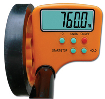 This model has five digit, can measuring 1-9999.9 meters. the aluminum handle can pull out and up to 90cm, with fine lock.
