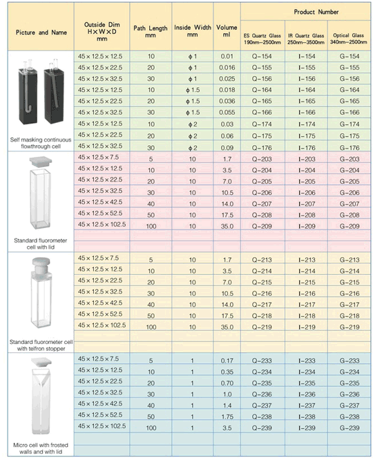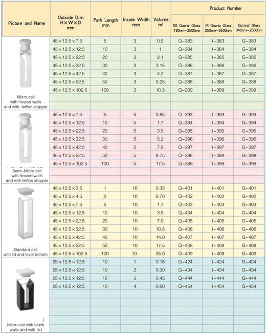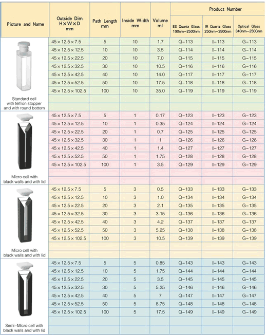 Standard Cuvettes with telflon stopper | |