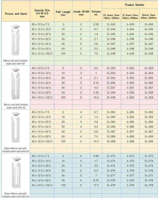 Semi-Micro cell with frosted walls and with telflon stopper | |