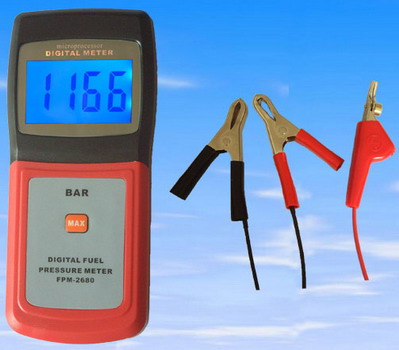 meter indicates diesel fuel pressure. Connect to battery terminals and fuel pressure sensor signal wire and digital display will show current fuel pressure and, if required, maximum pressure detected. |