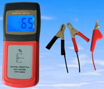 common electronic fault. Simple-to-use digital meter indicates throttle position sensor output voltage. Connect to battery terminals and sensor signal wire and digital display will show output voltage as a percentage. |