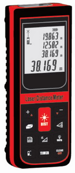 Specifications: 1. Area Volume measurement 2. Data Addition/Subtraction 3. Continuous Measurement 4. Min/Max measurement 5. Multi 4-line display 6. Display Illumination 7. Buzzer indication 8. level: digital 9. Timer 10. Angle sensor: ±90° (>70M) 11. Protection class: IP54 12. Measuring range:0.05-100M 13. Measurement accuracy: ±2mm 14. Laser class: Class 2M II; 620-690mm, <1mW Laser type 15. Operation Temperature: 0°C ~ +40°C 16. Storage Temperature:-20°C ~ +70°C 17. 5000max Batteries life, AAA LR6 2x1.5V Batteries 18. Switch off laser beam without operation:30 seconds 19. Switch off instruments with inactivity: 180 seconds 20. Dimension of Instrument:118*36*20mm 21. Weight without batteries: 70g |