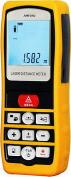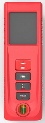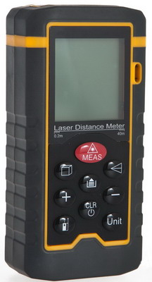 Measuring range:0.05-40m,accuray:±2mm. Laser type: class 2M II 635nm, <1mW. Distance, Area, volume calculations Indirect measurement using Pythagoras Addition/subtraction Continuous measurement Minimum/maximum distance tracking Display illumination and multi-line display Buzzer indication Dust protect/splash-proof: IP54 Auto laser switch off: after 0.5min Auto instrument switch off: after 3min Battery life: up to 5,000 measurements Size (H x W x D): 124 x 41 x 28.5mm |