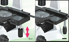 Rectangle double layers mechanical stage 185×142mm, moving range 75×55mm, comfortable operation with low position adjustable knobs |