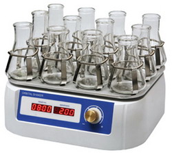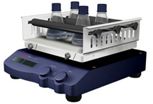 with ideal swivel motion, for a maximum shaking weight of 7.5kg 2. LCD display for speed and time adjustment, makes it possible to read the speed, timer function and operating mode 3. Wide range of attachment combinations makes it possible to use almost all shapes and sizes of vessels 4. Electronic adjustment of speed and timer 5. Electronic time switching clock: time or continuous operation mode 5, Outer rotor brushless motor 6. Linear shaker optional 7. Over speed detection and protection 8. PC control via RS232 interface, software is available to control and document all measuring values via PC. Parameter can be set to carry out safety monitoring |