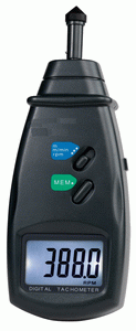 Accuracy: ±(0.05%+1 digit) Sampling Time: 0.5 sec (over 120RPM) Range Select: Auto - Ranging Memory: Last value, Max. Value, Min. value Can store 96s data Time Base: 6MHz Quartz crystal Power Consumption: Approx 45mA Measurement: CONTACT TACHO: 0.5 to 19,999RPM SURFACE SPEED: (m/min) 0.05 to 1,999.9(m/min) SURFACE SPEED: (ft/min) 0.2 to 6,560ft/min Resolution: CONTACT TACHO: 0.1RPM(0.5 to 999.9RPM); 1RPM(over 1,000RPM) Surface speed (m/min): 0.01m/min(0.05 to 99.99m/min); 0.1m/min (over 100m/min) Surface speed (ft/min): 0.1ft/min(0.1 to 999.9m/min); 1ft/min (over 1,000ft/min) Power: 4X1.5V AA Size Battery or to external DC 6V Regulated power supply |