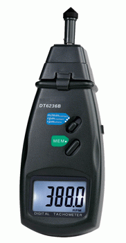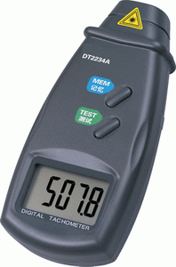 (0.6") LCD Accuracy: ±(0.05%+1 digit) Sampling Time: 0.8sec(over 120RPM) Range Select: Auto-Ranging Memory: Max. value, Min. value, Last value Measuring Range: 2.5~99,999RPM Resolution:0.1RPM(2.5~999.9RPM) 1RPM(over 1,000RPM) Detecting Distance: 50~500mm Battery: 3x1.5V AA battery(DT2234A) 3x1.5V AAA battery(DT2234C) Time Base: 6MHz Quartz crystal Time Base Accuracy: 10x10-6(0~50°C) Power Consumption: Approx 40mA Dimension:160Lx72Wx37H(mm)(DT2234A) 184Lx76Wx30H(mm)(DT2234C) |