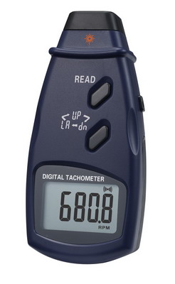 White backlight LCD Accuracy: ±(0.05%+1 digit) Sampling Time: 0.5sec(over 120RPM) Range Select: Auto-Ranging Memory: Max. value, Min. value, Last value, Can store 96s data Time Base: 6MHz Quartz crystal Detecting Distance: 50~500mm Power Consumption: Approx 55mA Measuring Range: 2.5~99,999RPM Resolution: 0.1RPM(2.5~999.9RPM); 1RPM(over 1,000RPM) Total Test Range: 1~99,999 Frequency Range: 1~1,666.6Hz Resolution: 0.01Hz Battery: 4x1.5V AA Size Battery or to external DC 6V Regulated power supply |