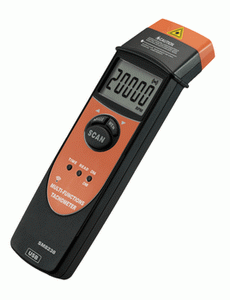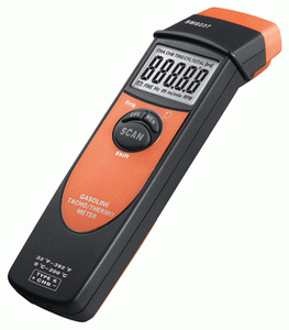 1,2,3,4-cylinder; 4-CIRCLE 1,2,3,4,5,6,8- cylinder Measurement range: engine 100-20000r/min; Laser: 2.5-99999r/min Detection method: engine: electromagnetic induction; Laser reflective Laser tacho detecting distance: 30-600mm Resolution: 0.1/1 Operating conditions: 0-+45℃(32℉-104℉),≤90%RH Accuracy: ±(0.05%n+1d) Memory: MAX/MIN/LAST value Power supply: 4x1.5V AA (UM-3) battery Dimensions: 220x68x38mm Weight (not including probe): 164g |